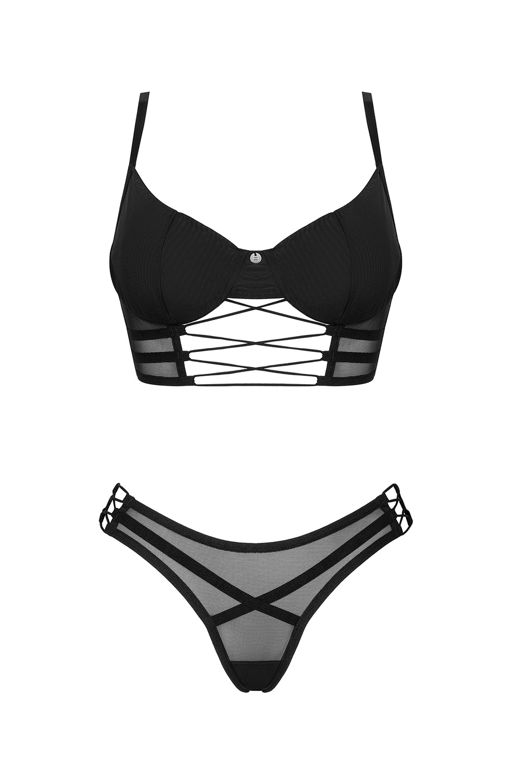 Obsessive Roxelia 2-pcs set Nocna komplet biustonosz + stringi, czarny
