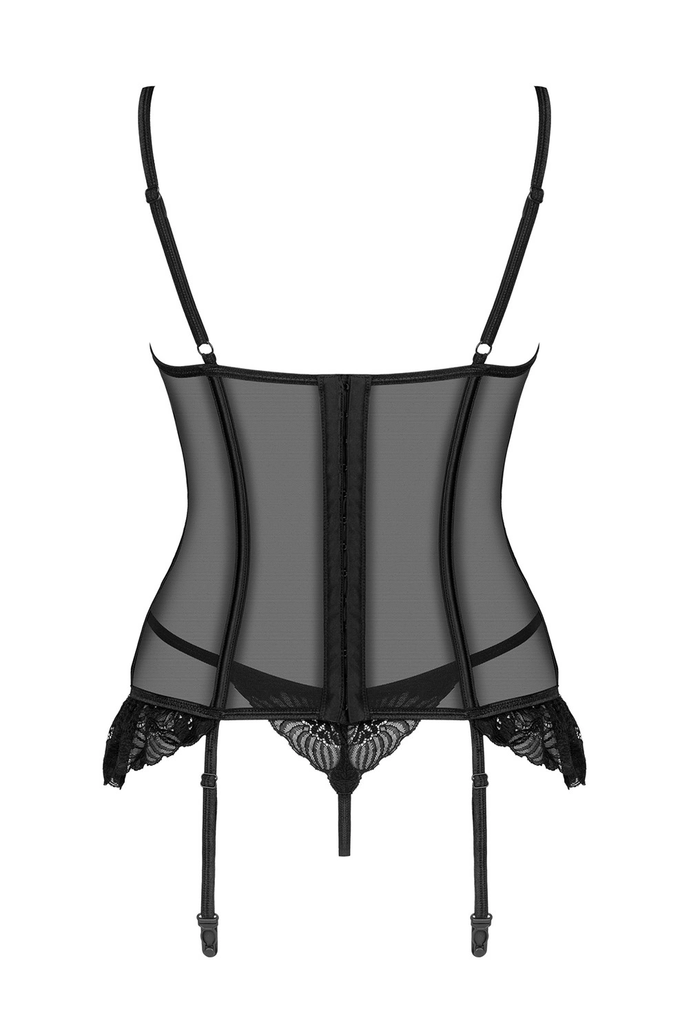 Gorset marki Obsessive. Model Serena Love corset. Produkt został wykonany z 0% poliamid, 0% elastan. Fiszbiny pionowe osadzone na bokach. Miejsce zapięcia: tył. Troczki są regulowane. Pas z troczkami. Posiada druty, które podpierają piersi odpowiednio je kształtując. Produkt damski. Majtki biodrówki. Gorset zapinany na haftki. Produkt posiada regulowane ramiączka.