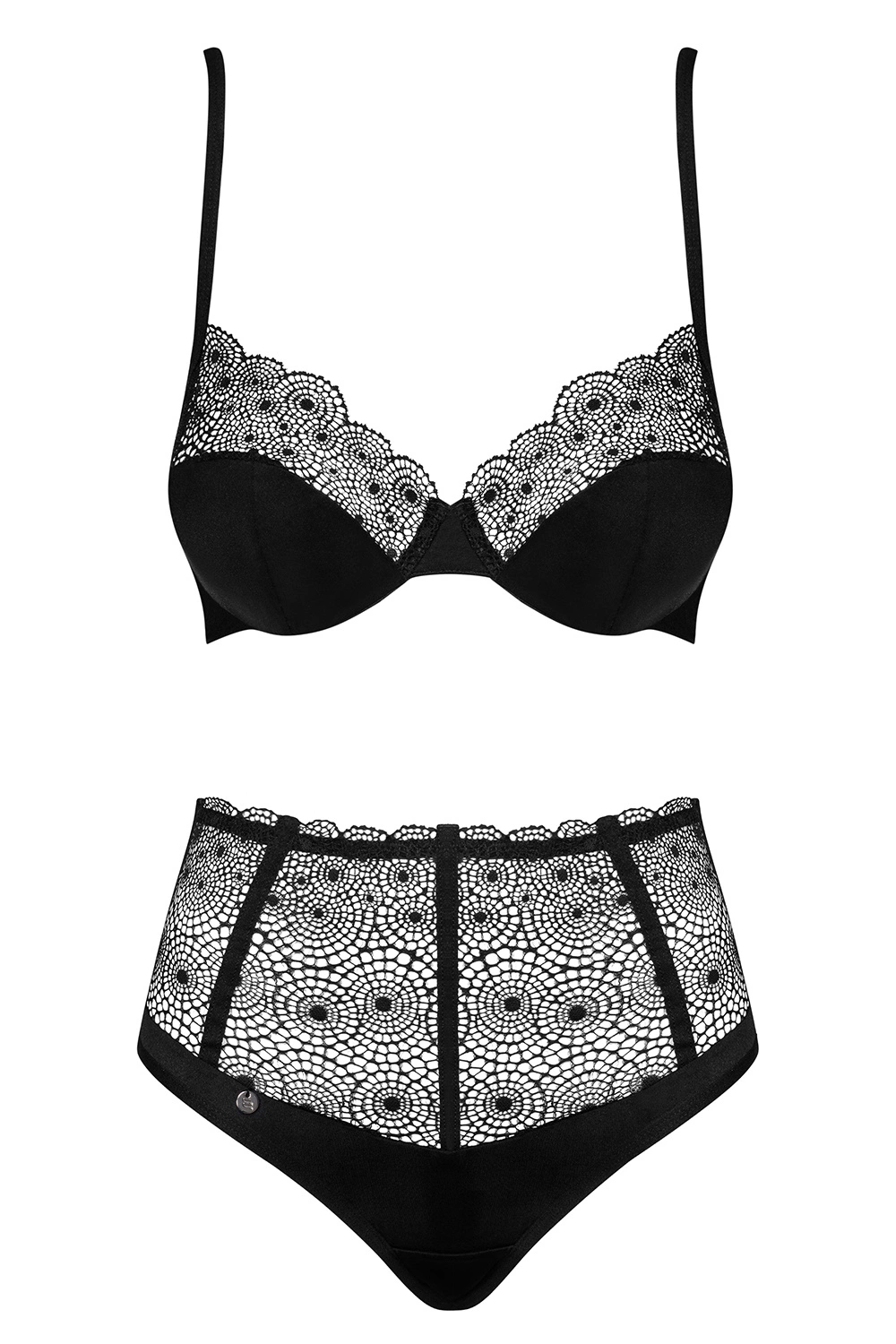 Obsessive Sharlotte 2-pcs set Nocna komplet biustonosz + stringi, czarny
