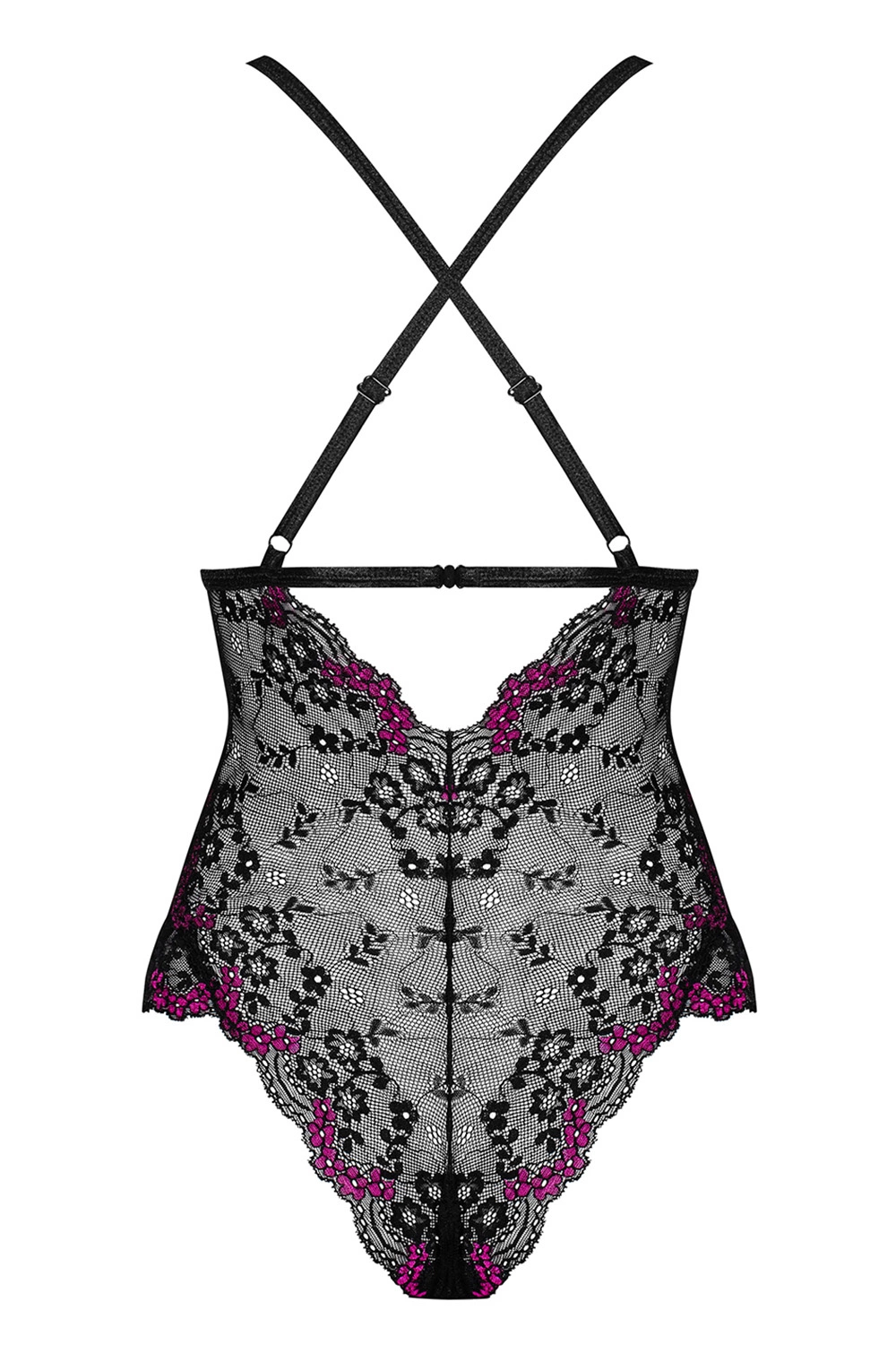 Body marki Obsessive. Model Vanessme teddy. Z zapięciem w kroku. Body zapinany na zatrzaski. Produkt został wykonany z 90% poliamid, 10% elastan. Produkt posiada regulowane ramiączka bez możliwości ich odpięcia. Produkt damski.