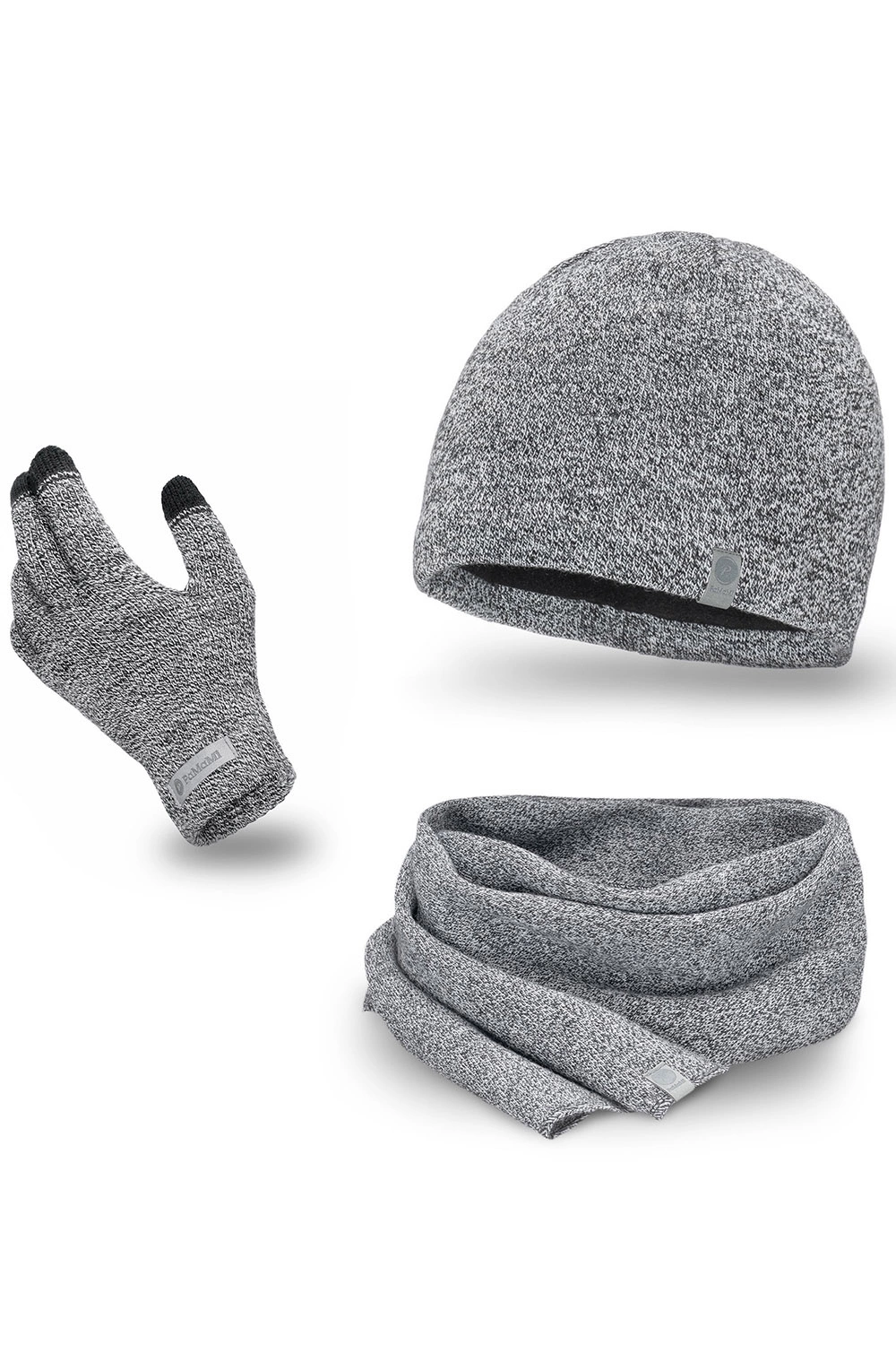 Pamami 14001+15102+16180 Komplet czapka+komin+rękawiczki, 029 jasnoszary melanż