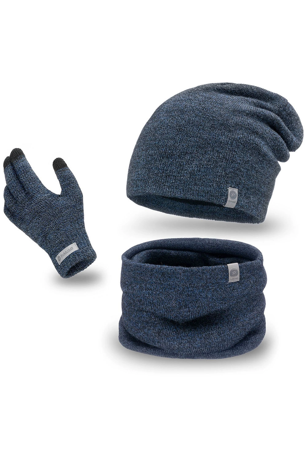Pamami 15012+16106+16180 Komplet czapka+komin+rękawiczki, 031 granatowy melanż