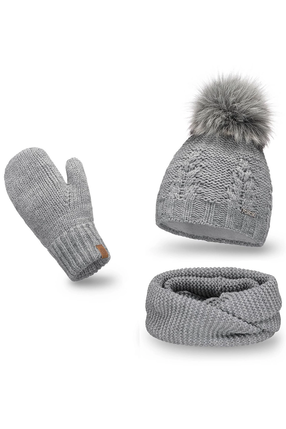 Pamami 17549+14603+20680 Komplet czapka+komin+rękawiczki, 003 jasnoszary