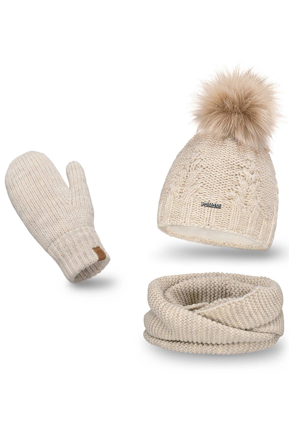 Pamami 17549+14603+20680 Komplet czapka+komin+rękawiczki, 004 beżowy