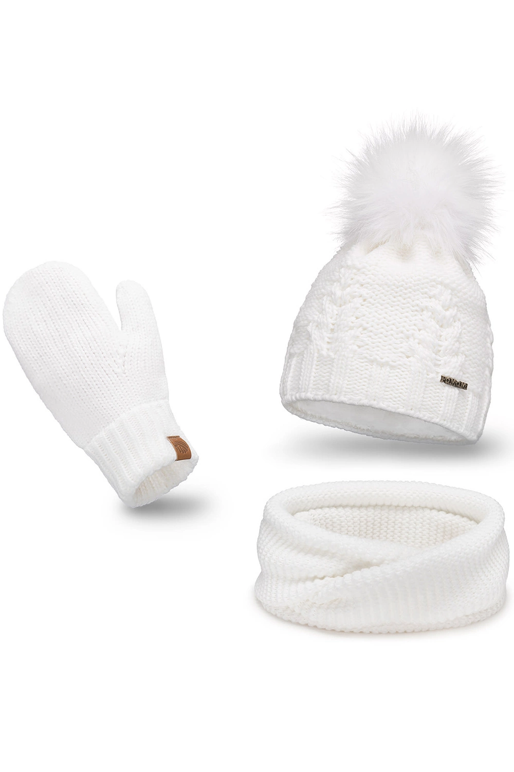 Pamami 17549+14603+20680 Komplet czapka+komin+rękawiczki, 007 biały
