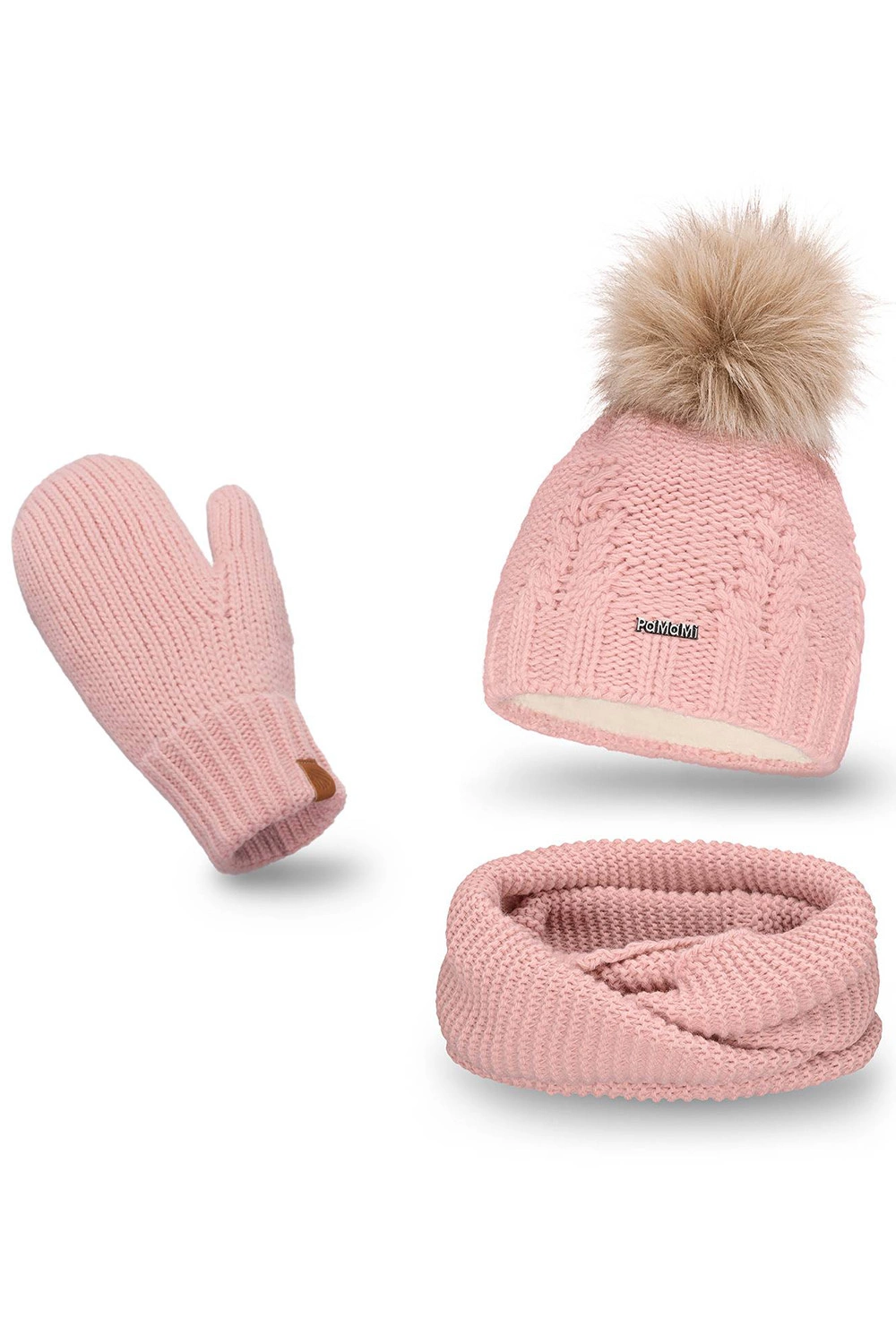 Pamami 17549+14603+20680 Komplet czapka+komin+rękawiczki, 009 pudrowy róż