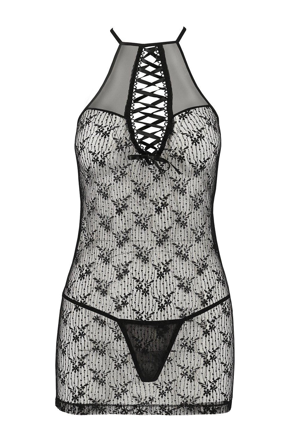 Passion Azalia chemise Nocna komplet koszulka + stringi, black