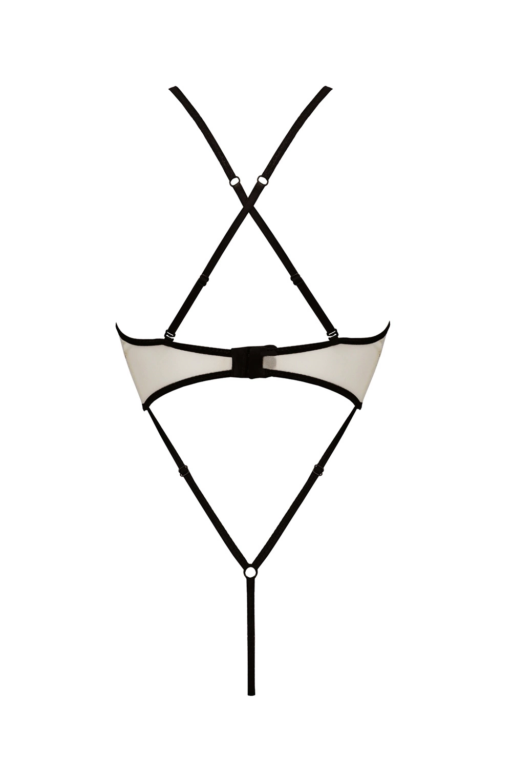 Body marki Passion. Model Chika body. Posiada druty, które podpierają piersi odpowiednio je kształtując. Body zapinany na haftki. Produkt został wykonany z 85% poliamid, 10% elastan, 5% poliester. Produkt posiada regulowane ramiączka bez możliwości ich odpięcia. Miejsce zapięcia: tył. Produkt damski. Bielizna wyróżnia się rozcięciem w kroku.