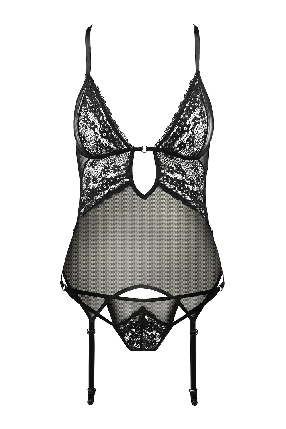 Gorset marki Passion. Model Erza corset. Produkt został wykonany z 75% poliester, 15% poliamid, 10% elastan. Produkt damski. Produkt posiada regulowane ramiączka. Troczki są regulowane. Pas z troczkami.