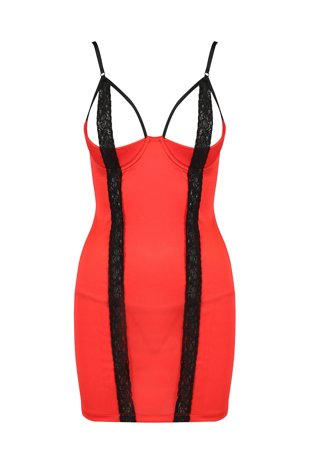 Nocna marki Passion. Model Femmina chemise. Produkt został wykonany z 75% poliester, 15% poliamid, 10% elastan. Miejsce zapięcia: tył. Nocna zapinany na haftki. Posiada druty, które podpierają piersi odpowiednio je kształtując. Produkt posiada regulowane ramiączka. Majtki biodrówki. Produkt damski.