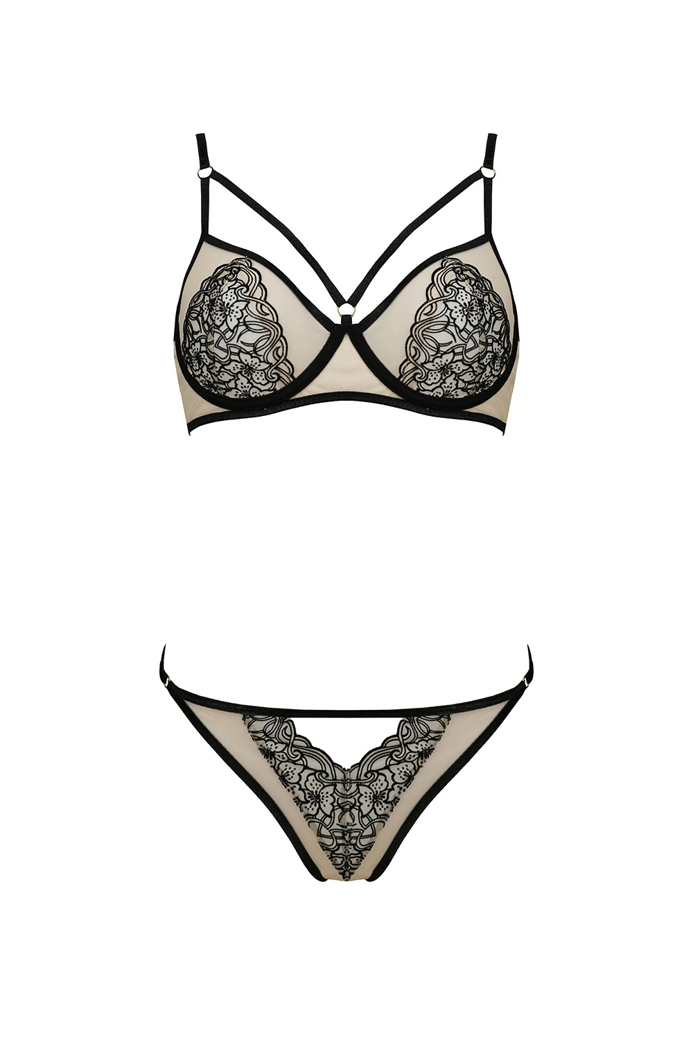 Passion Lorina set Nocna komplet biustonosz + stringi, beige