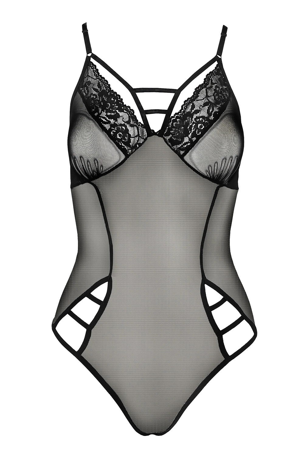 Body marki Passion. Model Melania body. Produkt został wykonany z 75% poliester, 15% poliamid, 10% elastan. Produkt posiada regulowane ramiączka bez możliwości ich odpięcia. Produkt damski.