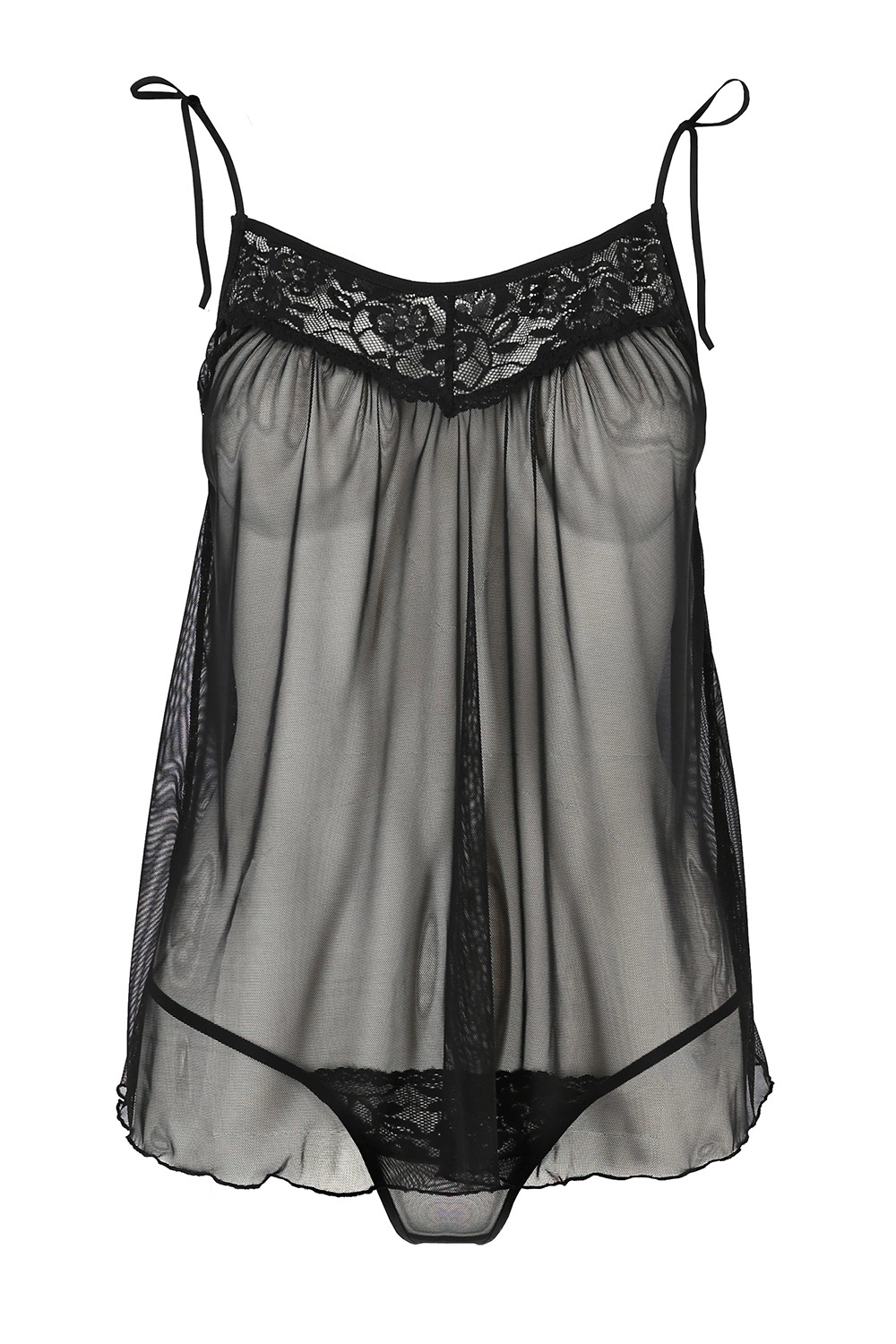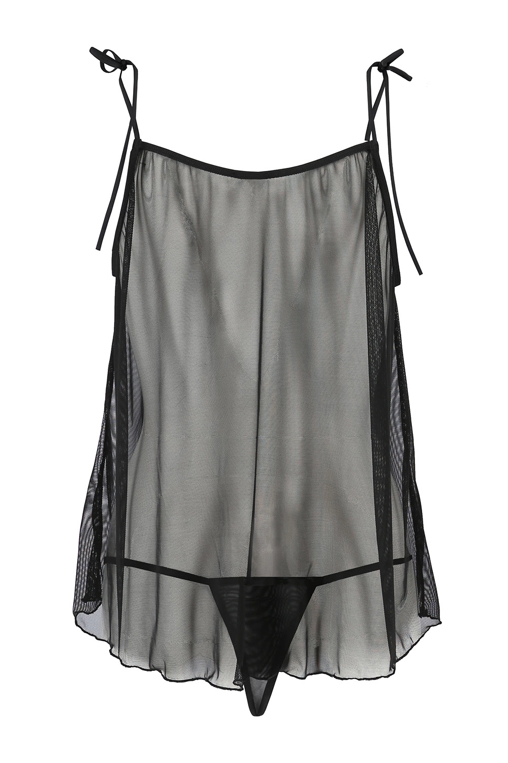 Passion Melania chemise Nocna komplet koszulka + stringi, black