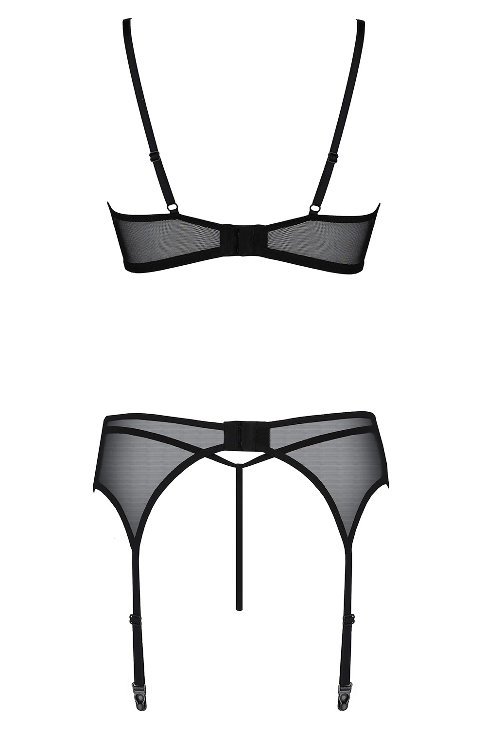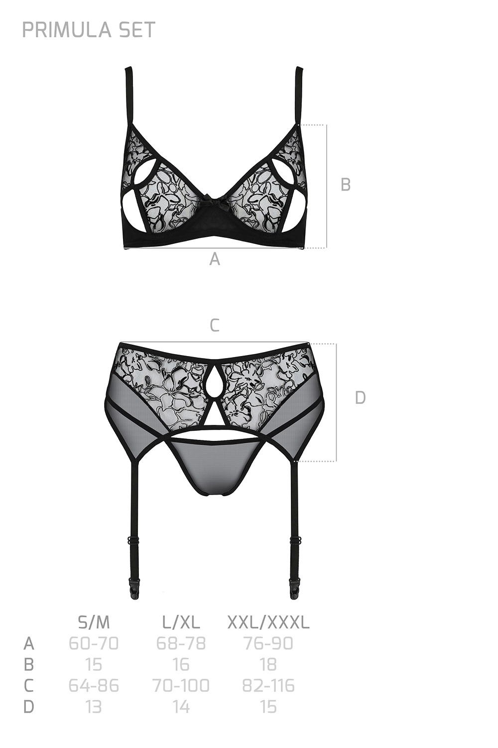 Passion Primula set Nocna komplet biustonosz + stringi + pas do pończoch, black