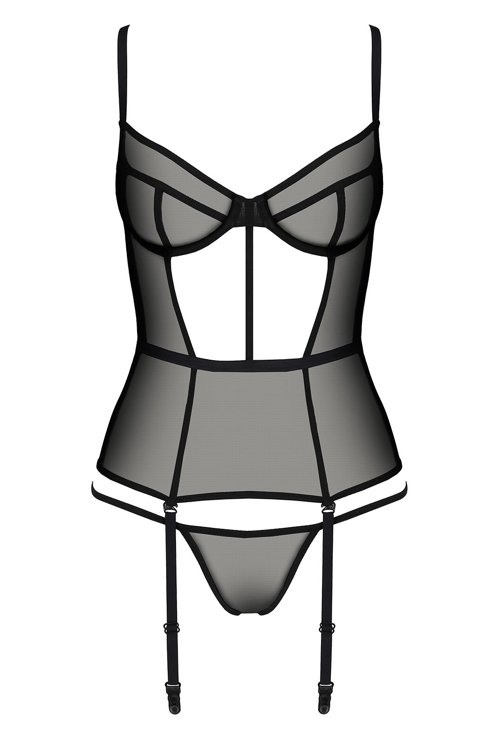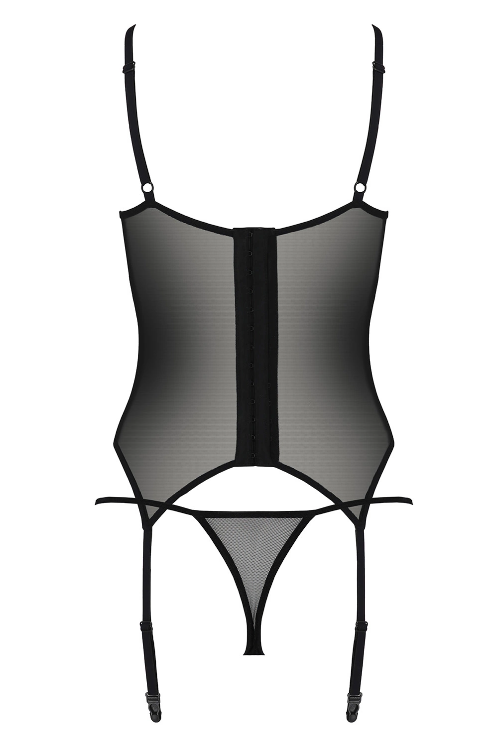 Gorset marki Passion. Model Varella corset. Produkt został wykonany z 47% poliamid z recyklingu, 43% regenerowany poliamid, 7% regenerowany elastan, 3% lycra. Miejsce zapięcia: tył. Produkt posiada regulowane ramiączka. Gorset zapinany na haftki. Troczki są regulowane. Posiada druty, które podpierają piersi odpowiednio je kształtując. Pas z troczkami. Produkt damski.