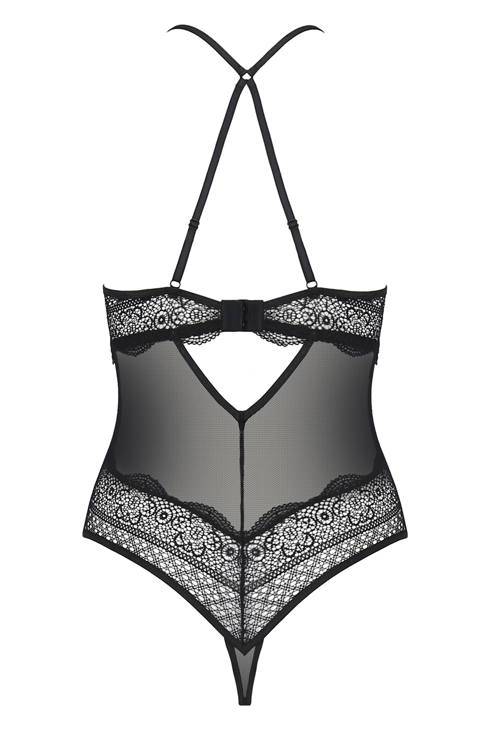 Body marki Passion. Model Yona body. Posiada druty, które podpierają piersi odpowiednio je kształtując. Body zapinany na haftki. Produkt został wykonany z 75% poliester, 15% poliamid, 10% elastan. Produkt posiada regulowane ramiączka bez możliwości ich odpięcia. Miejsce zapięcia: tył. Produkt damski.
