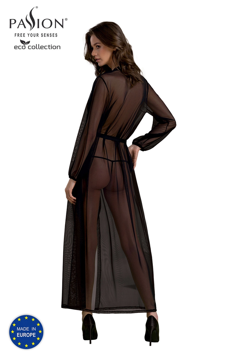 Nocna marki Passion. Model Zinnia peignoir. Produkt został wykonany z 47% poliamid z recyklingu, 43% regenerowany poliamid, 7% regenerowany elastan, 3% lycra. Długość rękawa: długi rękaw. Produkt damski. Długość: maxi.