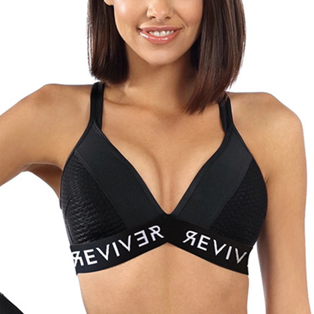 Top marki Reviver. Model F5520. Produkt został wykonany z 85% poliester, 15% elastan. Miejsce zapięcia: tył. Top zapinany na klamerka. Produkt damski.
