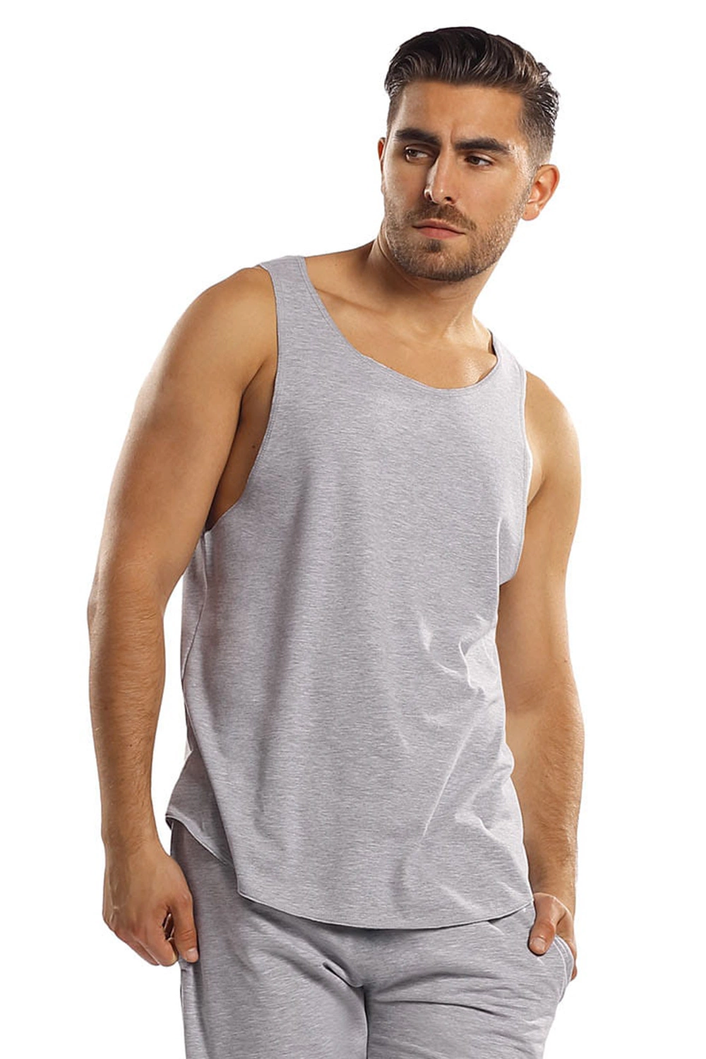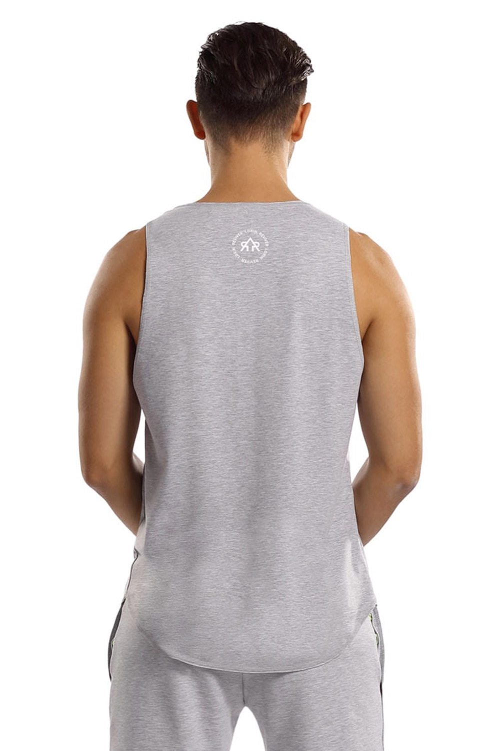 Koszulka marki Reviver. Model F5538. Produkt został wykonany z 90% bawełna, 5% elastan, 5% poliester. Długość rękawa: na ramiączkach. Produkt męski. Rodzaj dekoltu: okrągły.