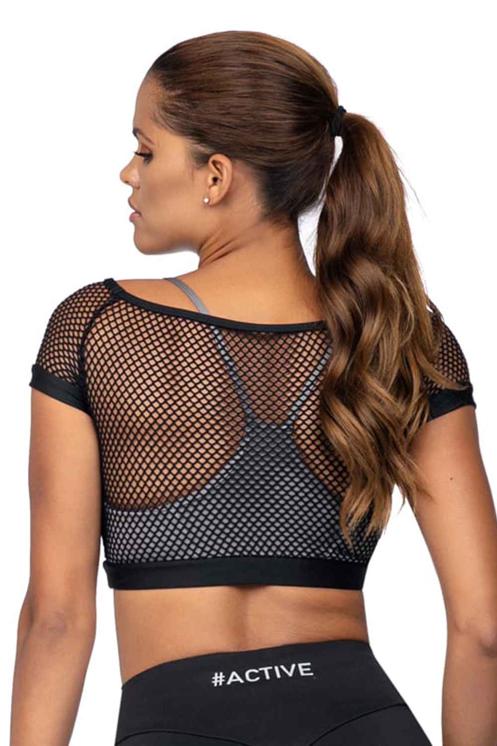 Top marki Reviver. Model L5167/0. Produkt został wykonany z 80% poliamid, 20% elastan. Rodzaj dekoltu: okrągły. Produkt damski. Długość rękawa: krótki.