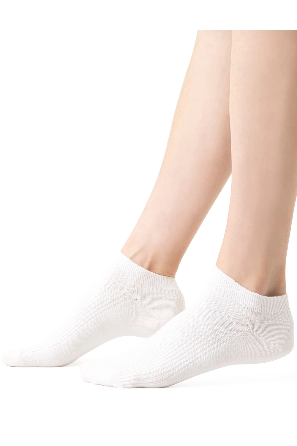 Skarpety marki Steven. Model 137 prążki. Produkt został wykonany z 70% bawełna, 28% poliamid, 2% elastan. Produkt damski.