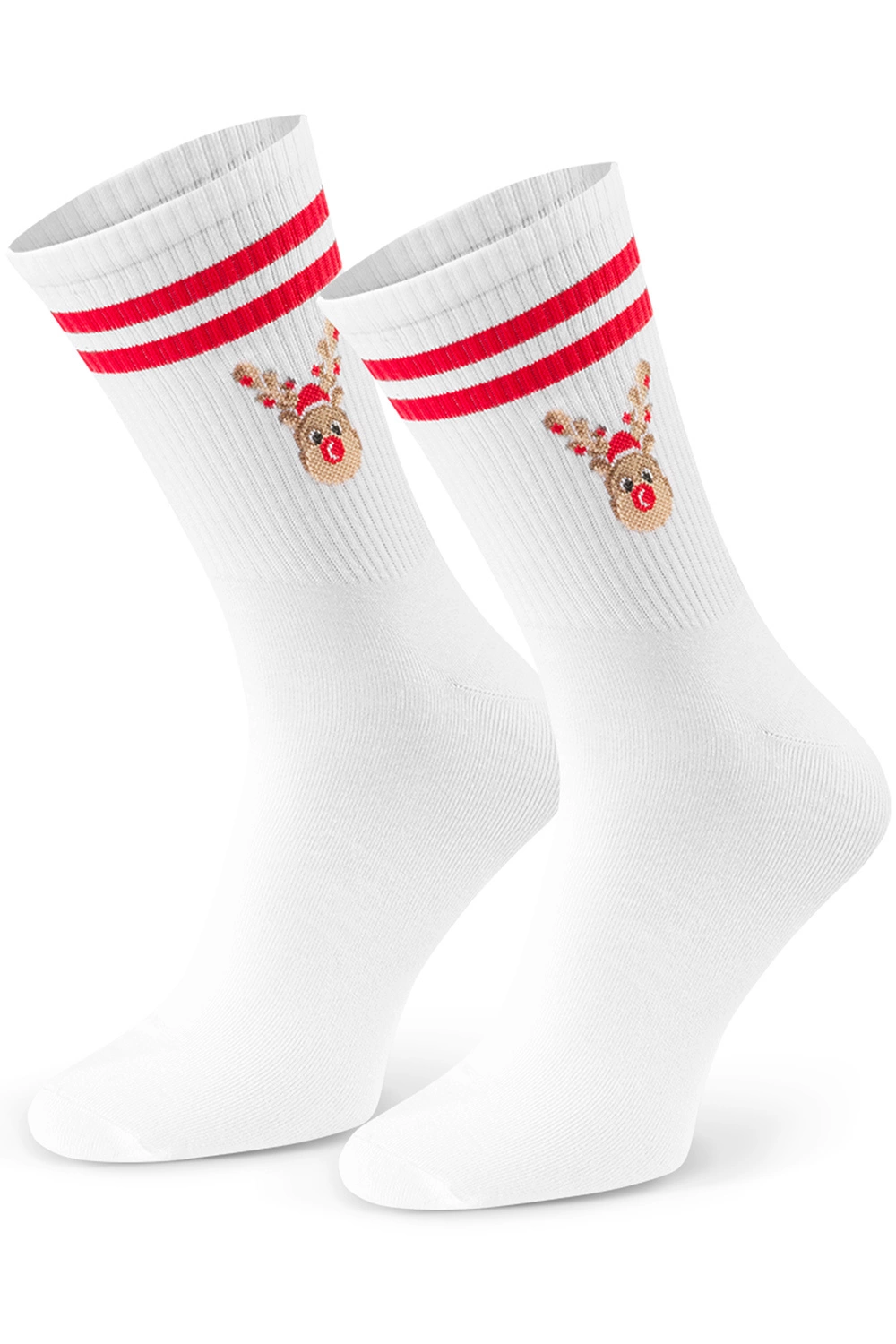 Steven Merry Christmas 136 MEN Skarpety za kostkę, biały-renifer