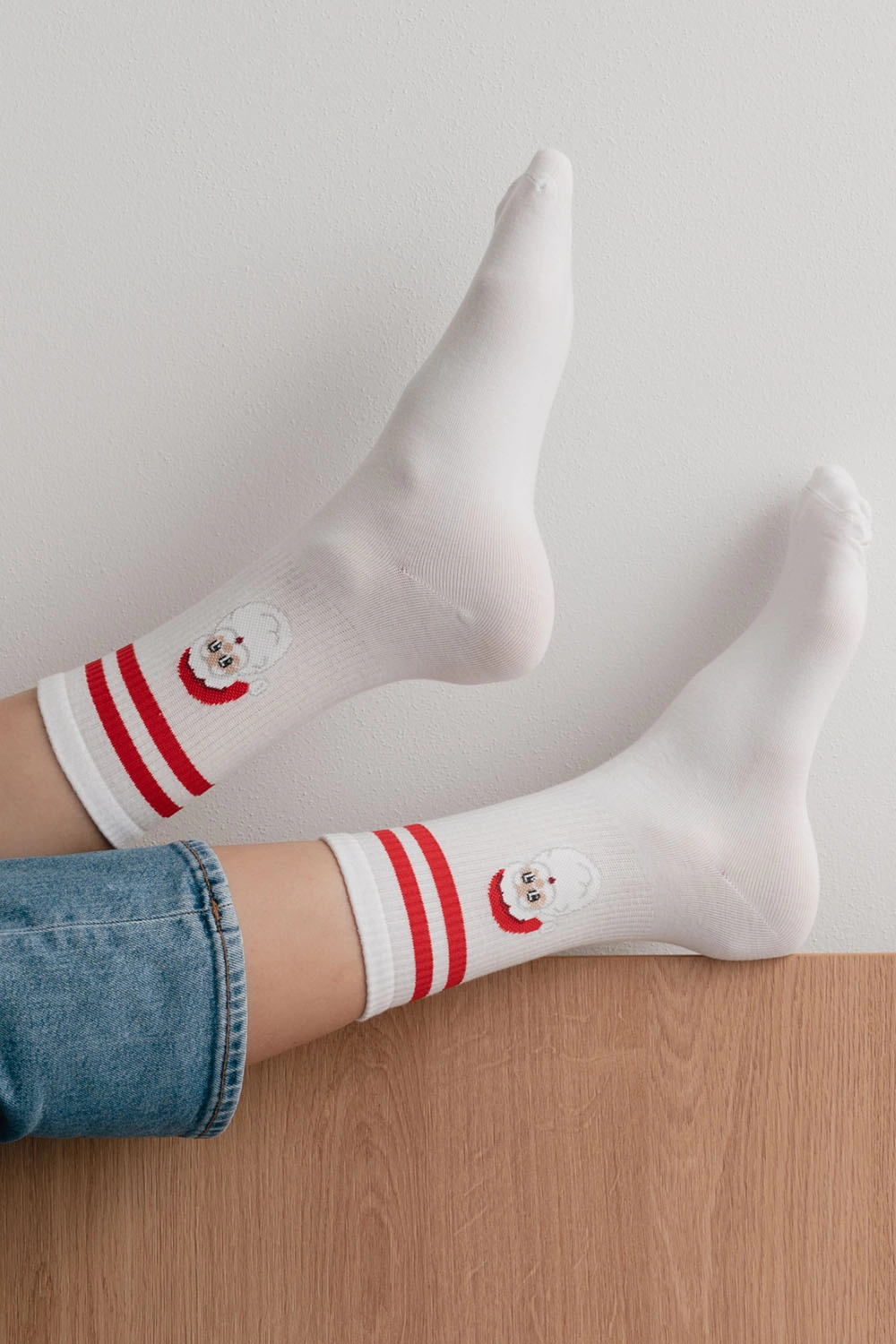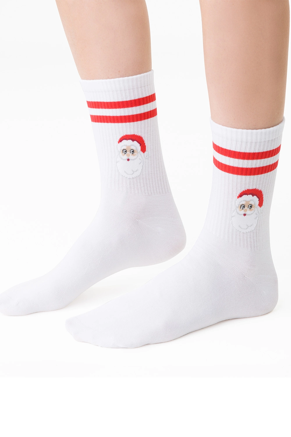 Steven Merry Christmas 136 Skarpety za kostkę, biały-mikołaj