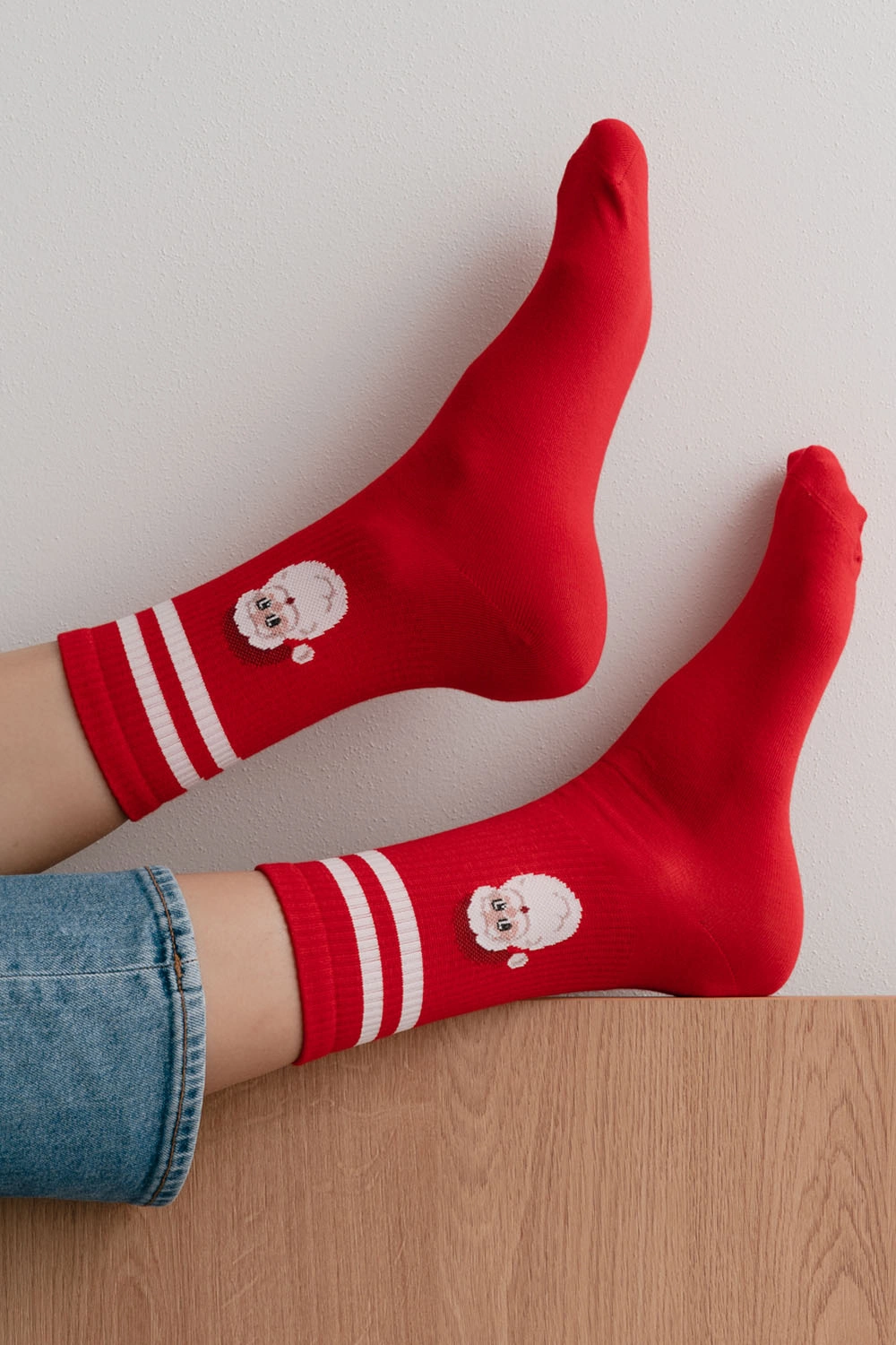 Steven Merry Christmas 136 Skarpety za kostkę, czerwony-mikołaj