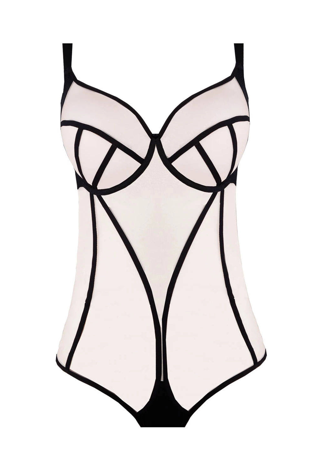 Body marki Unikat. Model Griselda. Posiada druty, które podpierają piersi odpowiednio je kształtując. Body zapinany na haftki. Haczyki do ramiączek metalowe. Produkt został wykonany z 88% poliamid, 12% elastan. Produkt posiada regulowane ramiączka bez możliwości ich odpięcia. Produkt damski.