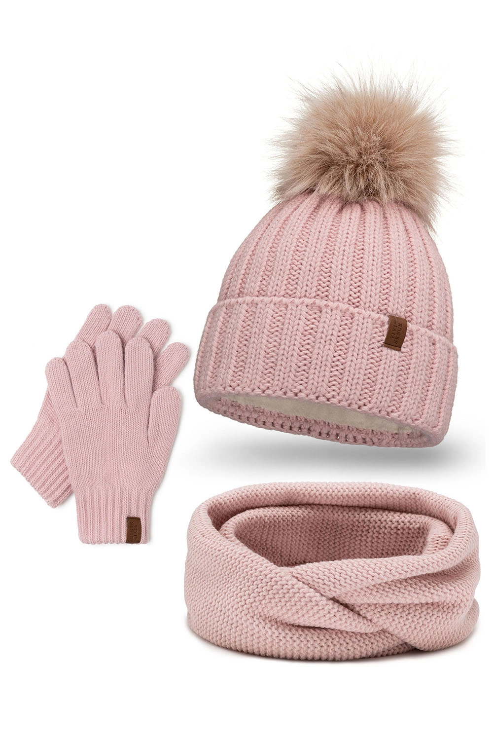 Vivisence 70100 Kmpl+R Komplet czapka+komin+rękawiczki, różowy