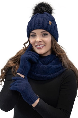 Vivisence 7014 Kmpl+R Komplet czapka+komin+rękawiczki, granatowy