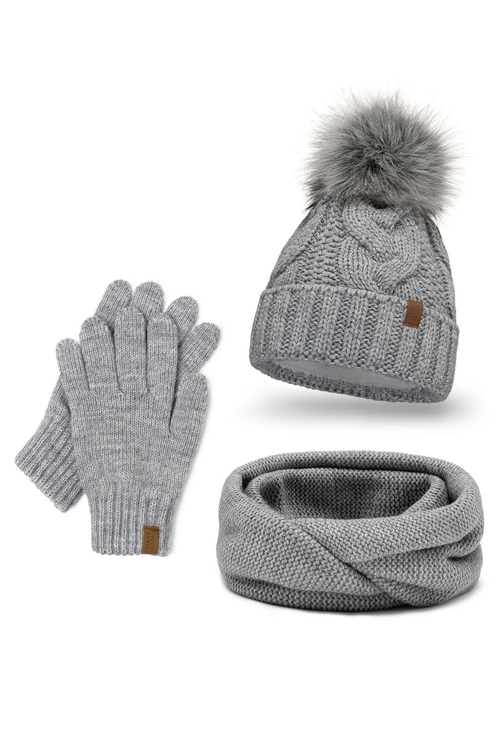 Modny komplet: czapka z pomponem, komin i rękawiczki.