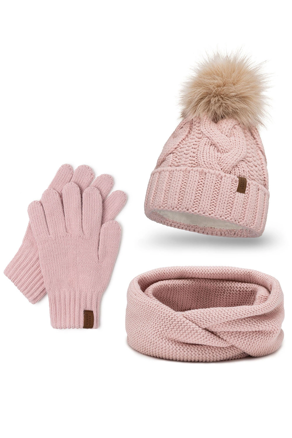 Vivisence 7014 Kmpl+R Komplet czapka+komin+rękawiczki, pudrowy róż