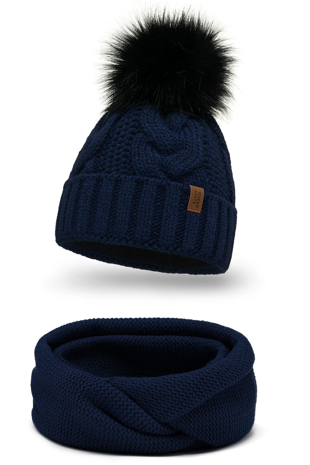 Modny zestaw: czapka z pomponem i komin.