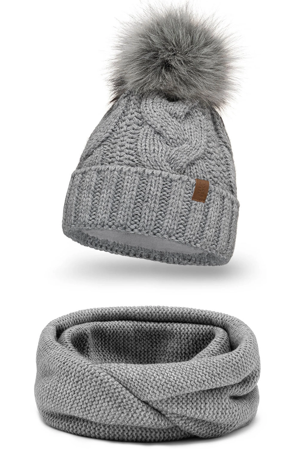 Modny zestaw: czapka z pomponem i komin.