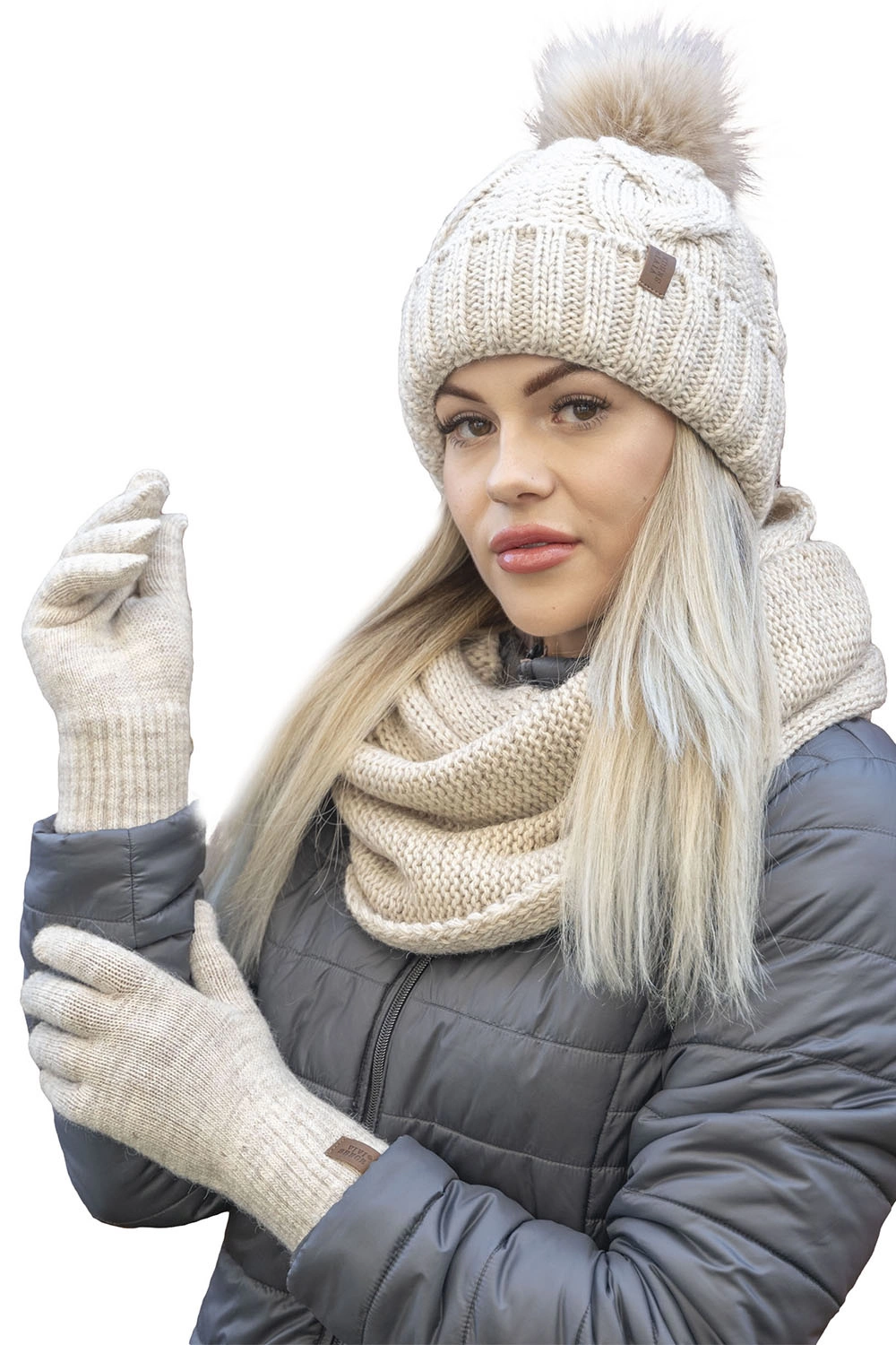 Vivisence 7014R Rękawiczki dzianinowe, beżowy jasny