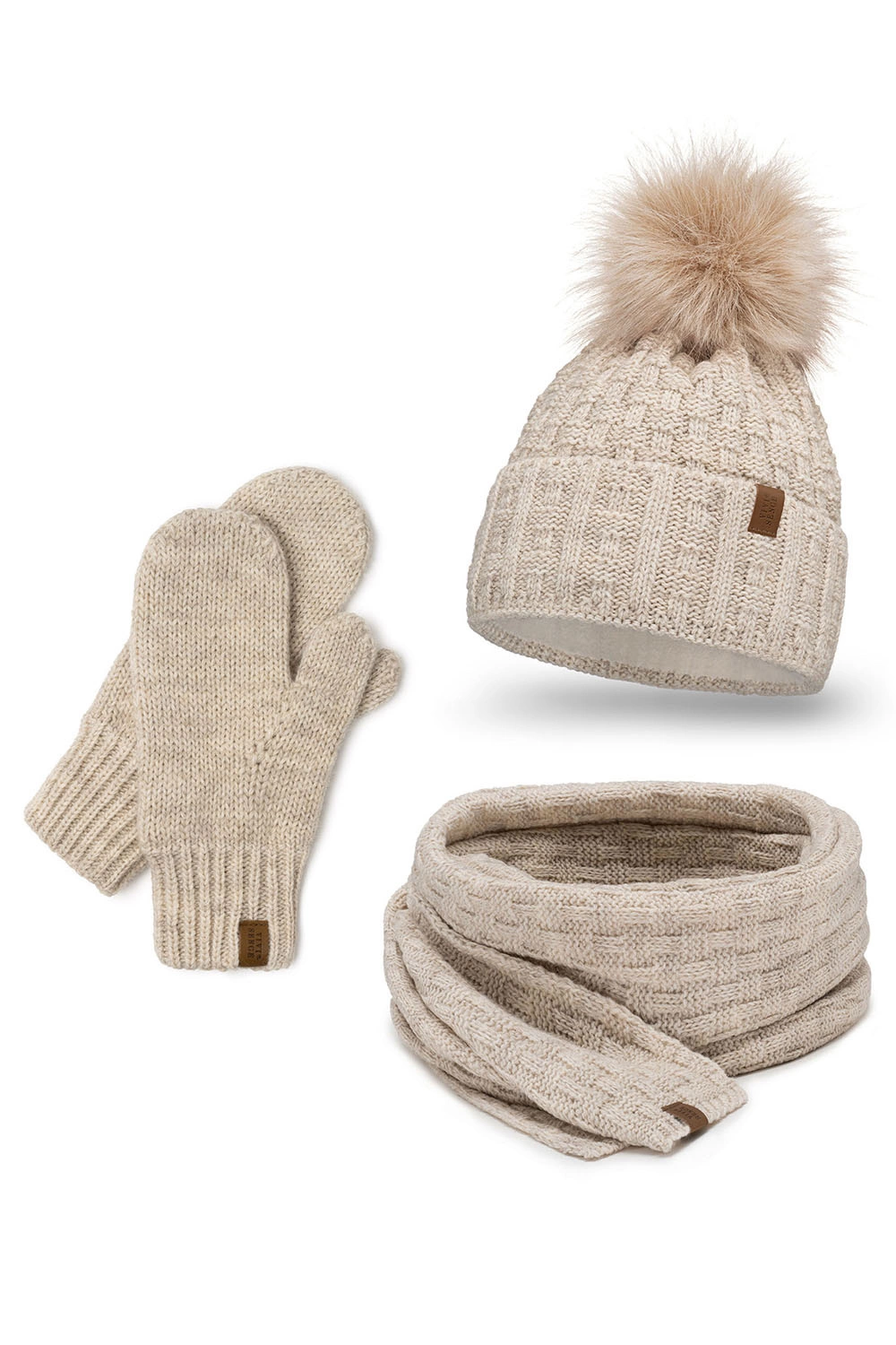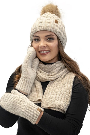 Vivisence 7015 Kmpl+R Komplet czapka+szalik+rękawiczki, beżowy