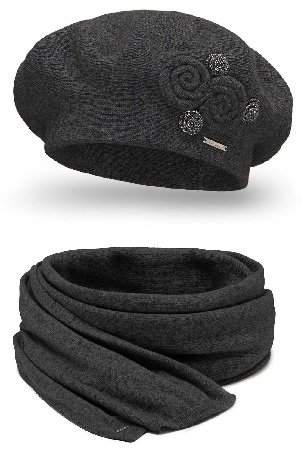 Vivisence 7037Kmpl Komplet beret+szalik, ciemnoszary
