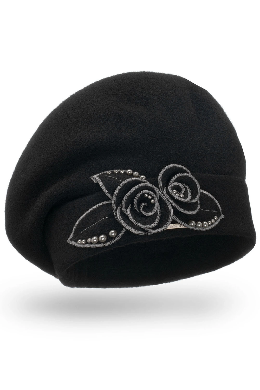 Przy jej produkcji została wykorzystana wysokiej jakości żywa wełna Woolmark®. Przędza potwierdzona jest certyfikatem Oeko-Tex standard. Czapkę zdobi kwiecista aplikacja z dodatkiem koralików. Z tyłu ma ściągacz i zakładkę, dzięki czemu pięknie układa się na głowie. Zaletą czapki są ręcznie robione i wyszywane zdobienia, dzięki czemu każdy egzemplarz jest niepowtarzalny.