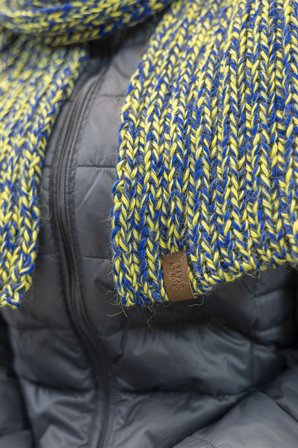 • wykonany jest z ciepłej, dwukolorowej przędzy
