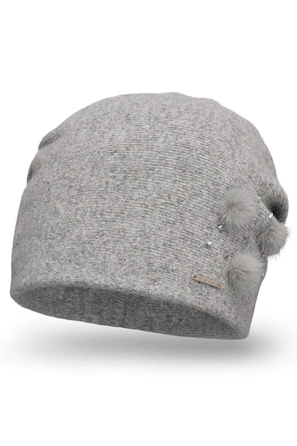 - przód zdobią trzy futrzane pompony oraz cyrkonie