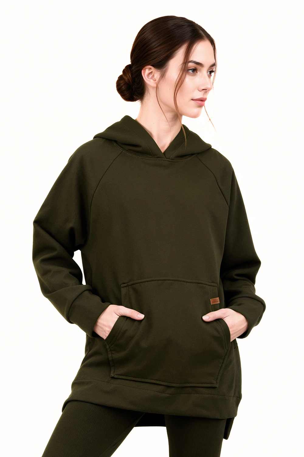Bluza Vivisence 9006 to codzienny komfort w prostej, dopracowanej formie. Miękka dzianina bawełniana z dodatkiem elastanu przyjemnie układa się na sylwetce i pracuje z ciałem. Nierozpinana konstrukcja i kaptur zapewniają wygodę oraz dodatkową osłonę w chłodniejsze dni. Z przodu znajduje się praktyczna kieszeń, do której szybko schowasz dłonie lub drobiazgi. Długie rękawy i dół wykończono elastycznymi ściągaczami, które trzymają formę i podkreślają sportowy charakter. Gładka powierzchnia bez krzykliwych nadruków sprawia, że model łatwo łączy się z dżinsami i spodniami dresowymi. Wysoka jakość wykonania przekłada się na estetyczne szwy i trwałość w codziennym użytkowaniu. To uniwersalna bluza do pracy zdalnej, na spacer, do podróży i na luzie po domu. Jeśli cenisz prostotę, funkcjonalność i wygodę, ten model sprawdzi się w wielu stylizacjach.