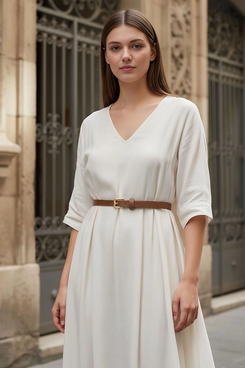 Klasyczny cienki pasek ze skóry naturalnej ze złotą klamerką.