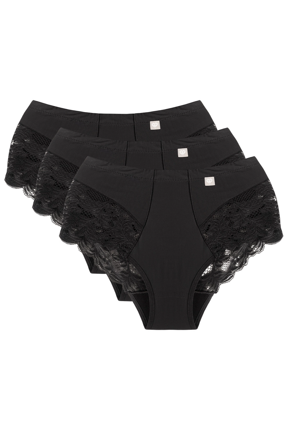 Wol-Bar Diamond 3506 3-pak Majtki wysokie figi, czarny