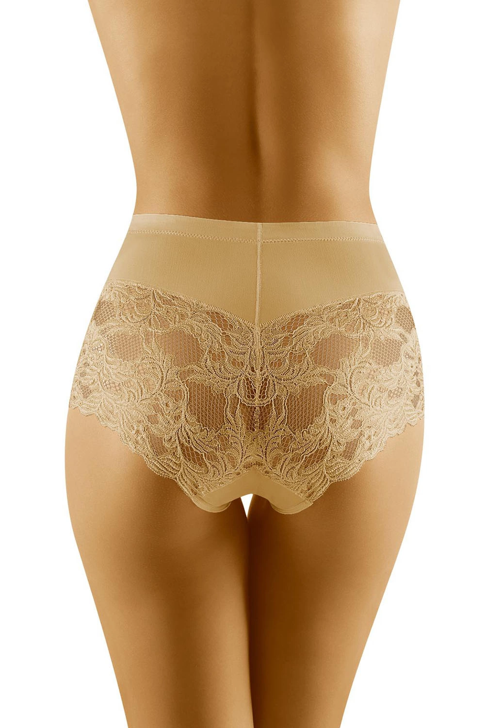 Majtki marki Wol-Bar. Model Diamond 3506. Produkt został wykonany z 58% poliamid, 42% elastan. Odzież modelująca. Majtki wysokie. Produkt damski. Zalety produktu: piękne koronkowe z wysokim stanem.