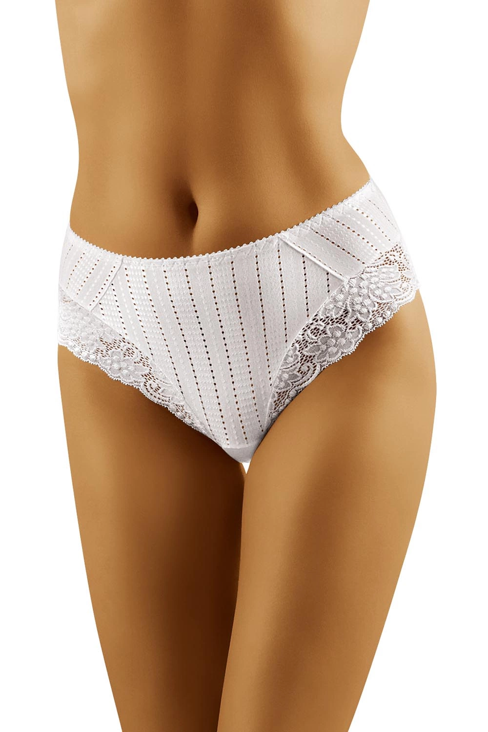 Majtki marki Wol-Bar. Model Eco-Di. Produkt został wykonany z 90% bawełna, 7% elastan, 3% poliamid. Produkt damski. Zalety produktu: klasyczne koronka prążkowane bawełniane wyższy stan.