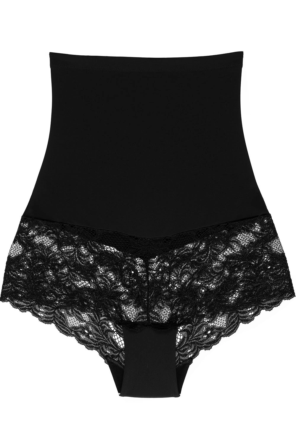 Majtki marki Wol-Bar. Model Preciosa. Produkt został wykonany z 58% poliamid, 42% elastan. Odzież modelująca. Produkt damski. Zalety produktu: wyszczuplające wysokie z koronką. Odzież korygująca. Bielizna wyszczuplająca. Majtki wysokie. Zawiera silikonową taśmę podtrzymującą.