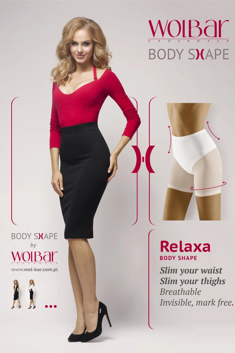 Majtki marki Wol-Bar. Model Relaxa. Produkt został wykonany z 58% poliamid, 42% elastan. Odzież korygująca. Zalety produktu: korygujące ściągające z siateczką. Bielizna wyszczuplająca. Produkt damski.