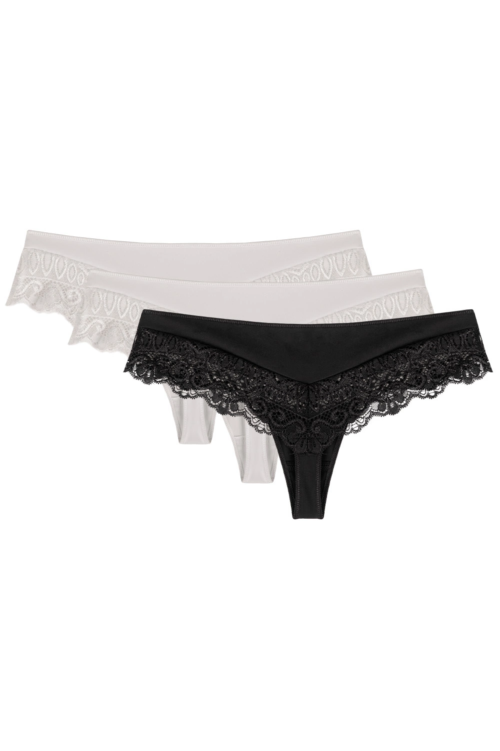 Wol-Bar Sirtaka 3-pak Majtki szorto-stringi, biały-biały-czarny