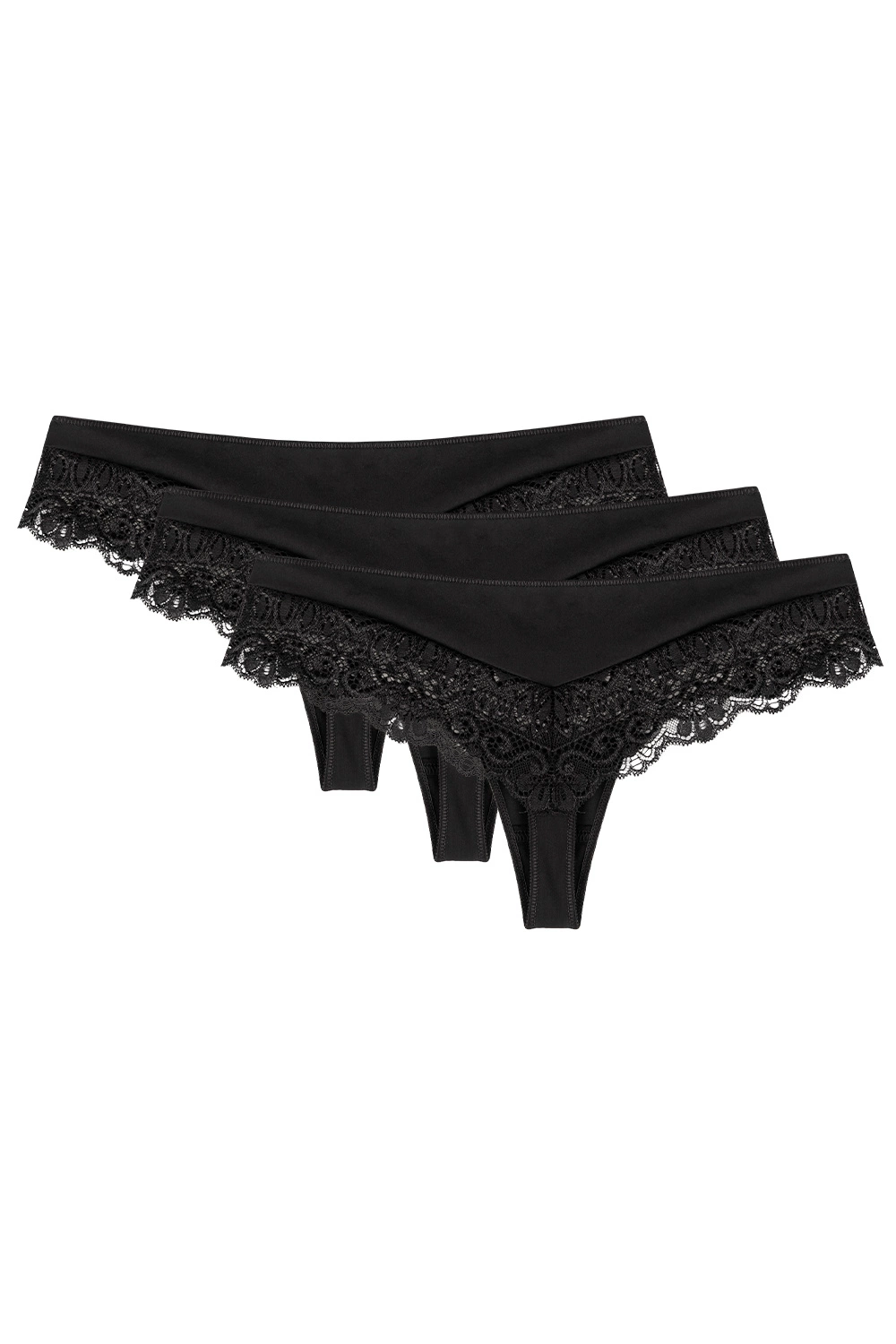 Wol-Bar Sirtaka 3-pak Majtki szorto-stringi, czarny